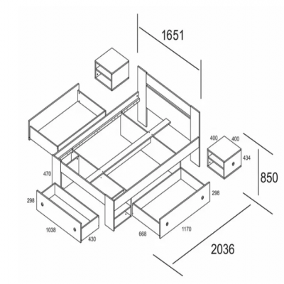 Двуспальная кровать Beneli СТЕЛЛА, с ящиком для белья, Дуб сонома/Белый, 160х200 см, 1 шт.